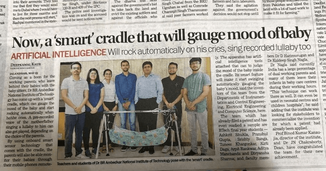System for virtual monitoring of baby in cradle and automatically performing remedial actions to soothe them. Mobile App for parents (or guardians) to track.